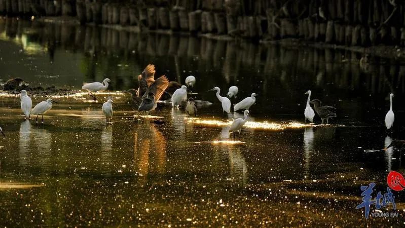 鷺鳥成群翩飛,蔚然壯觀