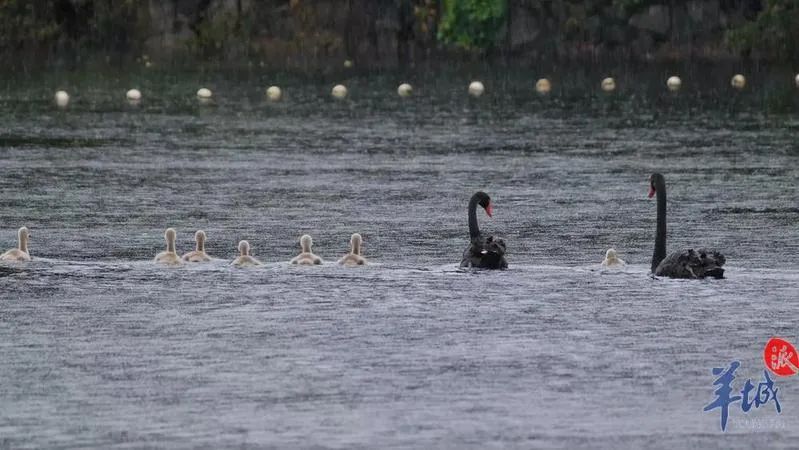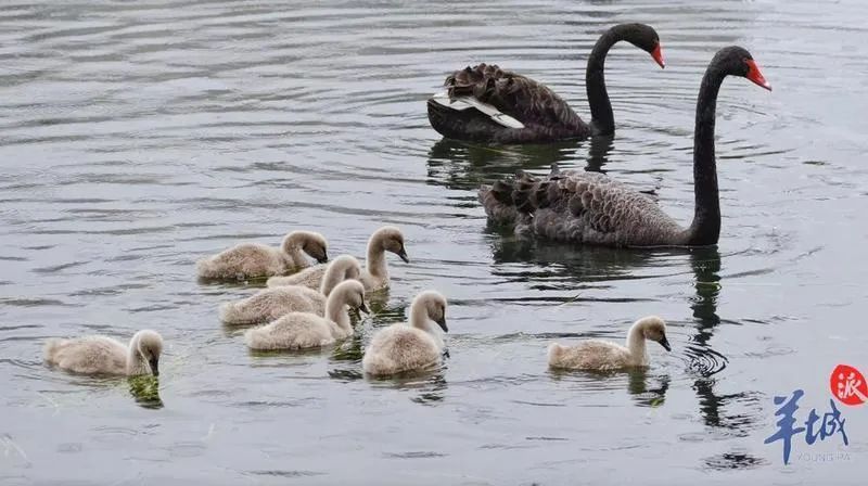 如今,它們一家九口經(jīng)常出來巡湖游弋
