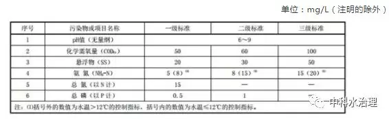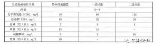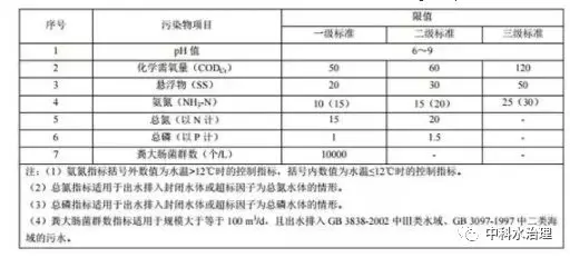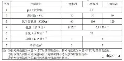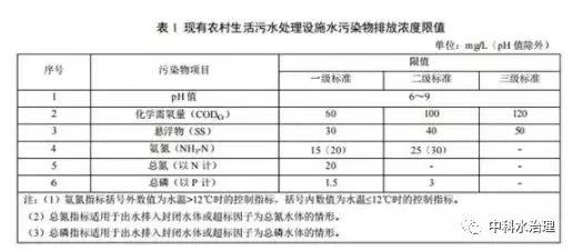 出水排入環境功能明確的水體,處理規模在 20 m 3 /d 及以上的農村生活污水處理設施執行表1規定的排放限值,處理規模在 20 m 3 /d 以下的執行表2規定的排放限值。