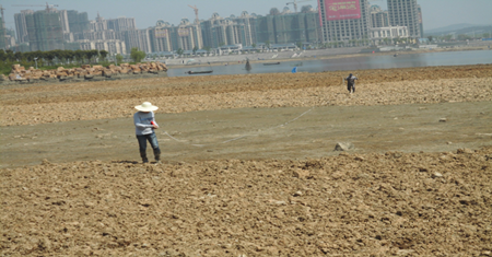湖區北側補水口為湖區主要污染源,污水主要由上游魚塘水、周圍建筑工地生活污水、路面、山坡、土坡等自然雨水匯集。水中含有較多的油污、水色黑灰、水體渾濁、水質為劣五類。