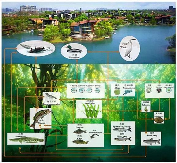 第二步,建立生態位,不同的魚、蝦適合在不同的生態位生長。中科水治理根據自然湖泊的形狀,為每一個物種人為設計適合的生存的環境。