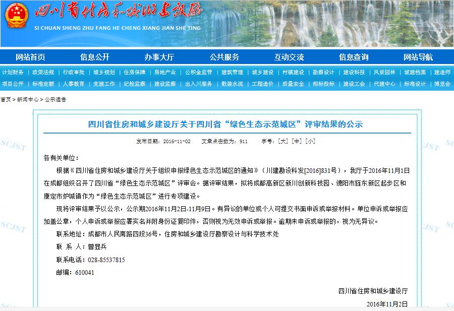 近日,四川省“綠色生態示范城區”評審結果在四川省住房和城鄉建設廳公示,成都高新區新川創新科技園將作為“綠色生態示范城區”之一進行專項建設。