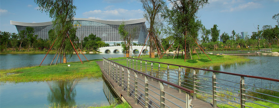 錦城湖3#、4#湖清水型生態(tài)系統(tǒng)構(gòu)建工程位于成都高新區(qū)內(nèi),是成都高新區(qū)投資建設(shè)開發(fā)有限公司打造的198項(xiàng)目,3#、4#湖水面總面積為21.23萬 m2。3#湖最大水深5.5m,4#湖最大水深3.2m。